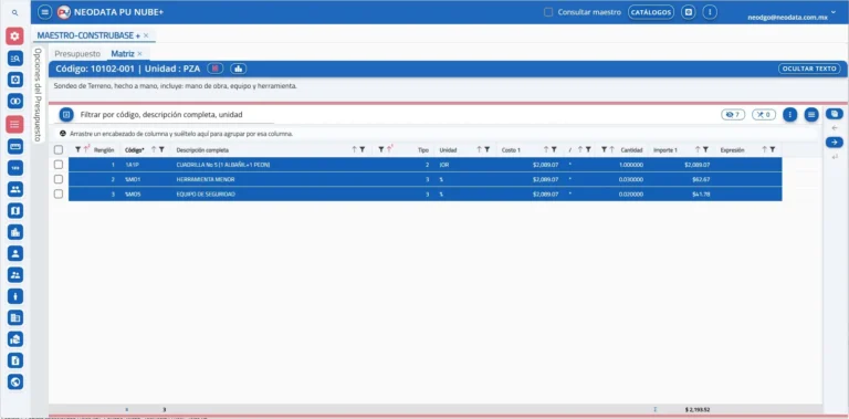 Neodata PU Nube+ le permite crear sus propios presupuestos y maestros